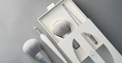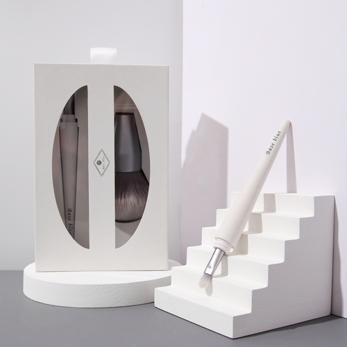 Compact eyeshadow brush and powder brush makeup tool. There’s more to the 2-in-1 Makeup Brush “A” than what meets the eye! The first to debut from Baseblue’s recursive dual brush series, the beauty tool features two different brush styles in a stacked, twistable design with a comfort grip handle. The soft synthetic bristles are perfect for capturing loose and pressed powder applications with the voluminous brush head. Get just the right amount of coverage when targeting areas around the forehead, cheeks and neck. Transform the multi-use brush by twisting off the top head to reveal the small angled eyeshadow brush that is dynamic for applying eye powders and touching up small facial curvatures.