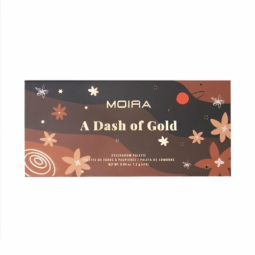 MOIRA A Dash of Gold Shadow Palette features an essential of 10 highly pigmented in ultra-mattes and lustrous shimmers. A must have range of earthy browns, neutral shades, and iridescent shimmers for a chic to sultry smoky look. Create endless looks and a dash of glam for any occasion.