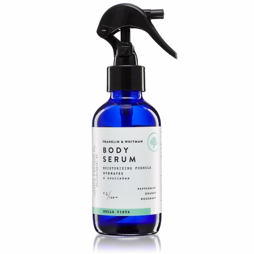Nourish and moisturize your skin with our all-natural Bella Vista Body Serum featuring a fresh, invigorating blend of Peppermint, Orange and Rosemary. This concentrated blend of hydrating oils is designed to soften and smooth while revitalizing your skin’s texture and appearance. It features essential vitamins, minerals, and nutrients to promote healthy looking skin while moisturizing and helping to relieve dry, rough patches. This expertly blended serum incorporates natural botanicals such as Pomegranate Seed, Rice Bran, Coconut, Olive, and Grape Seed oils to lock in moisture and leave your skin looking and feeling soft and supple.