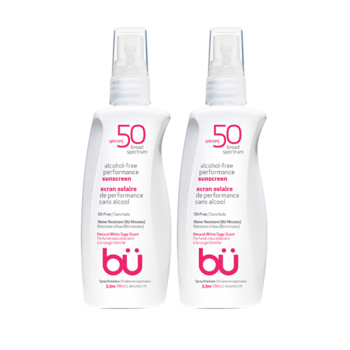 Bundle and save on your BU! Keep one at home and take one with you wherever your adventures take youThis SPF 50 is taking broad spectrum protection to a whole new level. Bu sunscreen is enriched with antioxidant Vitamin E to scavenge free radicals and prevent premature aging. Protecting yourself with our SPF 50 Fragrance Free Spray Sunscreen is as easy as spray, and off you go. Our SPF 50 formula is super light, quick-drying and non-greasy leaving your skin feeling naturally like you with  the peace of mind of high level UV Protection.