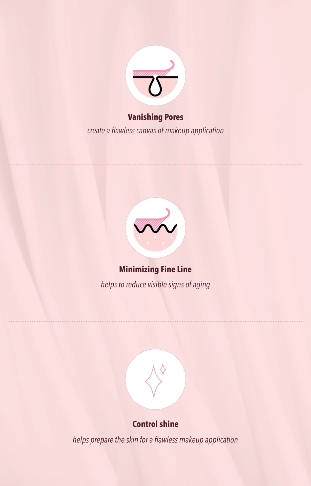 Diminish the appearance of visible pores and fine lines with our Complete Por Vanising Primer! Creamy and lightweight formula controls shine and helps prepare the skin for a flawless makeup application.