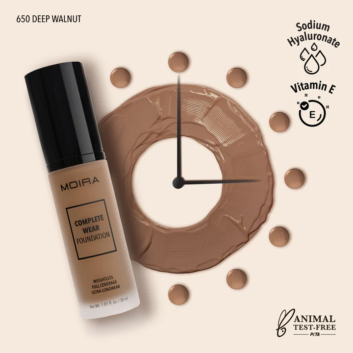 Complete Wear™ Foundation is a long-wear, water resistance, and weightless foundation that leaves a natural-looking skin tone with a matte finish. This build-able medium-to-full coverage foundation minimizes the appearance of pores and blurs out blemishes, spots, breakouts, and other small imperfections.