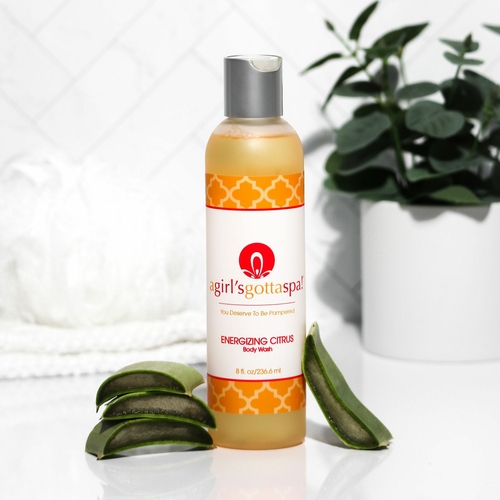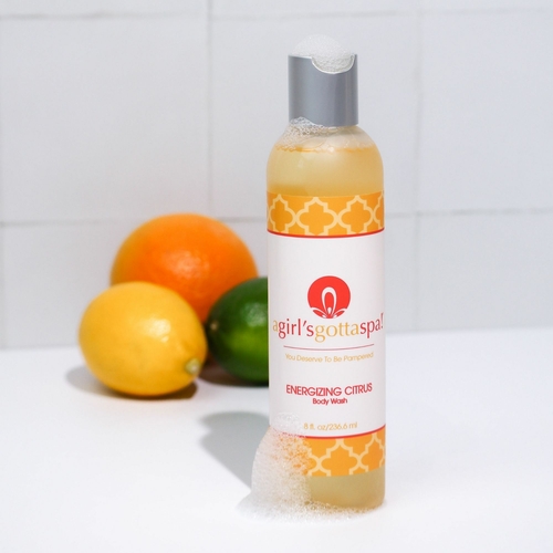 A Girl’s Gotta Spa! Energizing Citrus Natural Body Wash is a rich body cleanser that’s sulfate-free yet foamy and skin comforting.