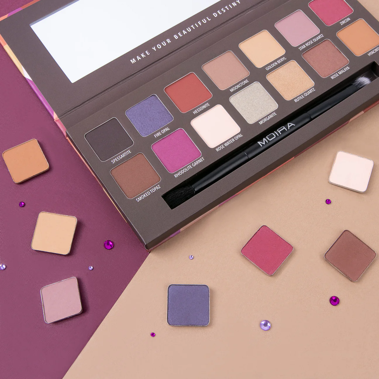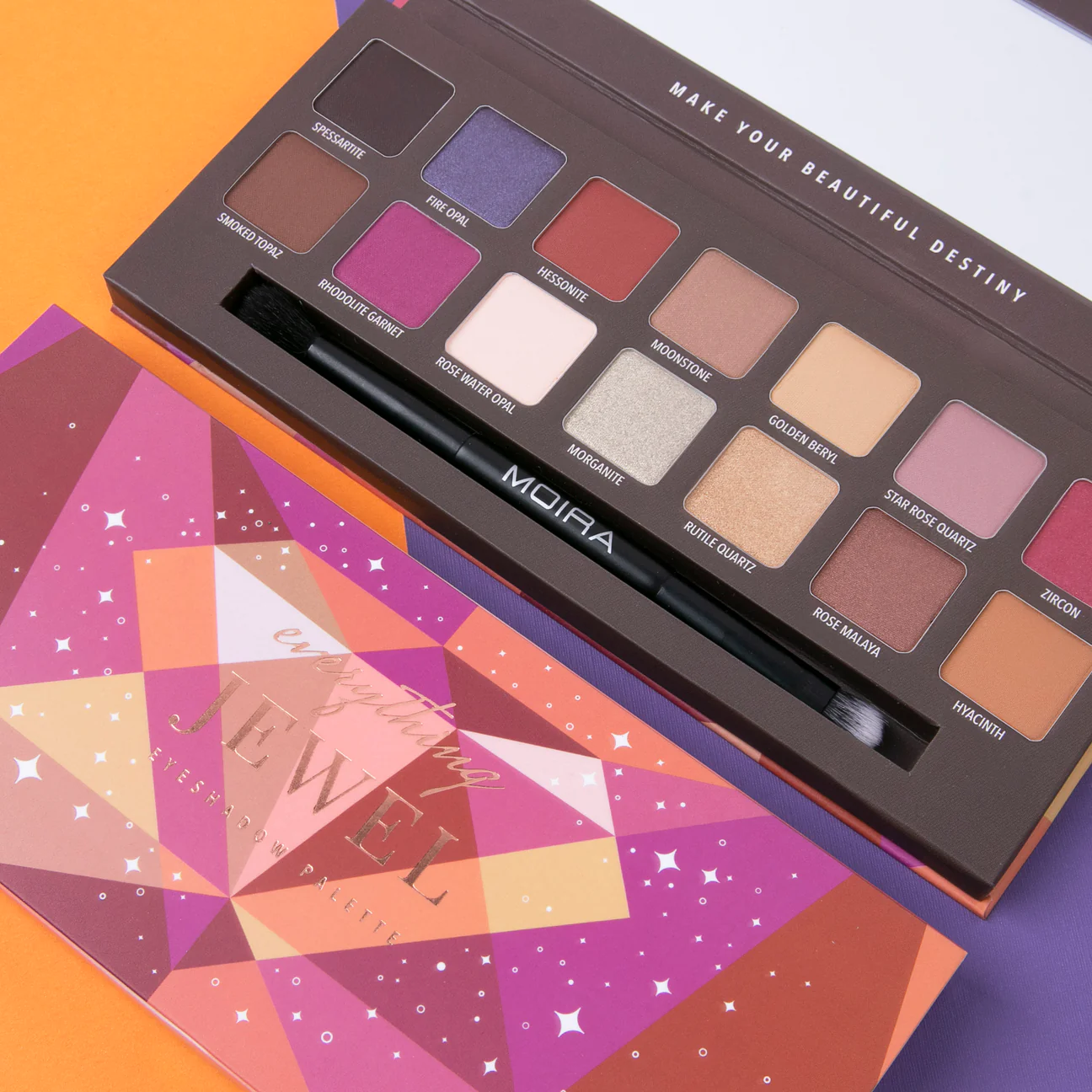 Let your eyes be your best feature! Glittering gemstones in luxurious hues that light up the spark in your eyes. Turn heads and capture attention with every enamoured stare. Alluring colors can be blended into exotic variations or build up for an intense metallic look. Go from day to night with MOIRA Everything Jewel Palette.