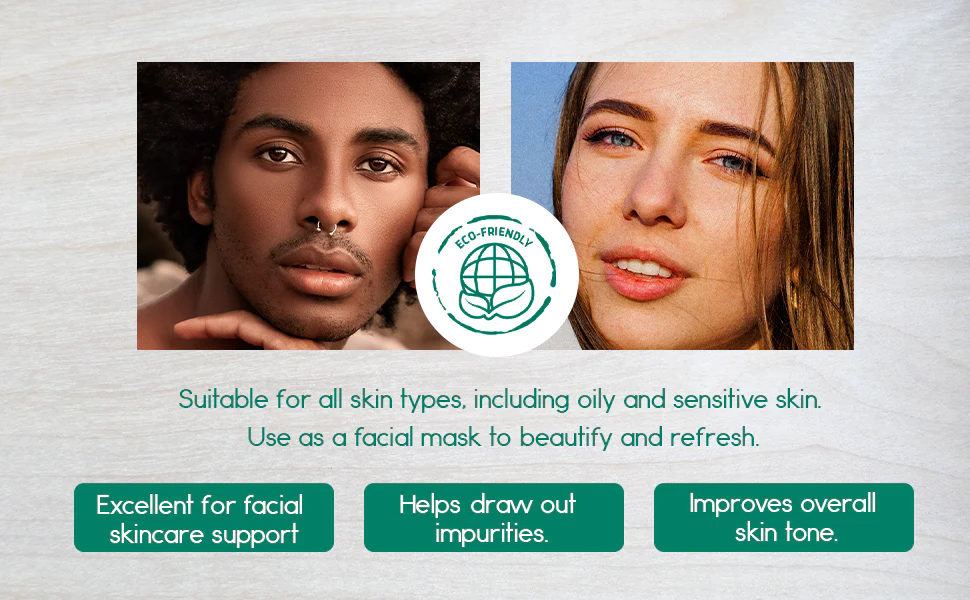 all skin types, including oily and sensitive skin. Use as a facial mask to beautify and refresh. Excellent for facial skincare support and deep pore cleansing. It effectively reduces the appearance of blackheads, whiteheads, and impurities.