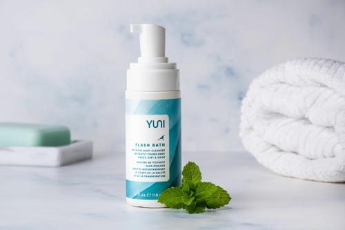 Our Flash Bath no-rinse foaming body cleansing wash absorbs quickly, so you can slip on your clothes and get back to your day. For heavy workouts, camping, sailing, or surfing, pair with YUNI Shower Sheets for a dynamic cleanse.