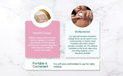 MULTIPURPOSE. Our high-performance foundation makeup brush can be used for your cream bronzer or blusher, liquid foundation, BB cream, shadow powder, concealer, etc. The residual foundation on the brush helps bring everything together, so it is seamlessly blended.