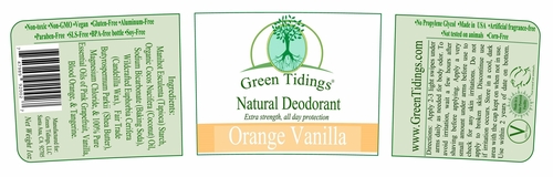 - Green Tidings All Natural Deodorant is: Non-toxic, Vegan, Gluten-free, Corn-free, Soy-free, Paraben-free, SLS-free, Aluminum-free, Propylene-glycol free, Fragrance-Free, Petroleum and Petrolatum-free, Pthalate-free, Paraffin-free, Mineral Oil-free, no artificial colors, No Silicone Oil, No Menthol, Phenol, or Salicylic Acid, Certified Cruelty-free by Leaping Bunny, & made in a solar powered facility.