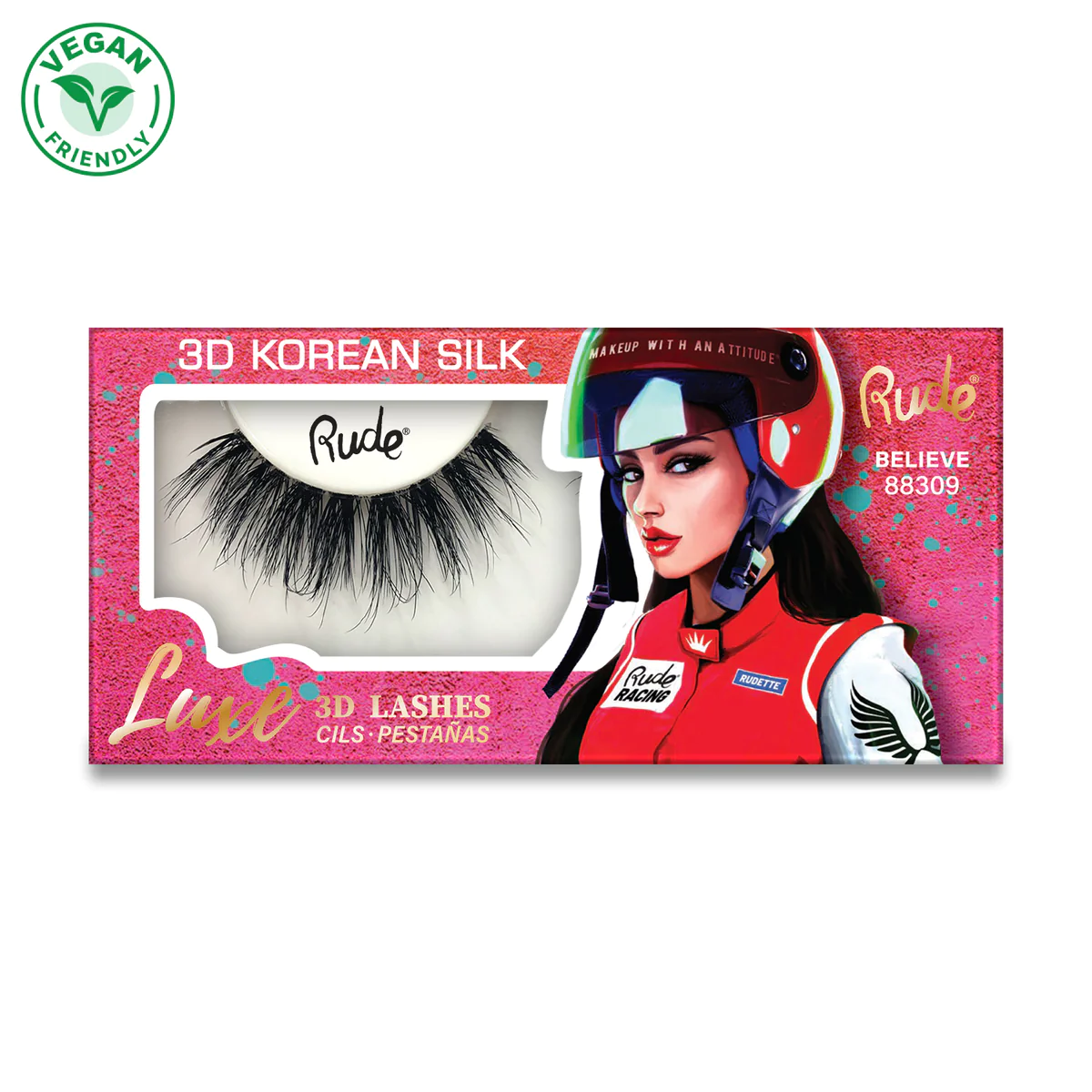 Glam up your everyday look with Rude Faux Mink 3D Lashes. Our full and fluffy Faux Mink lashes create a flirty, romantic makeup look. Translucent band for seamlessly blended lashes.
