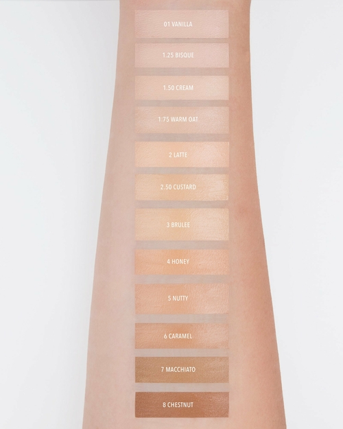 With a shade of up to two times lighter than your skin tone, apply under eyes, bridge of nose, middle of forehead, and cheeks to even out and highlight your face.