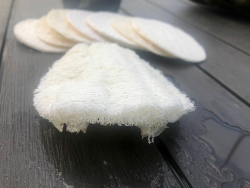 Soak into the water to expands then if you want to add your favorite soap and GENTLE deep cleansing with circular movements. Dry in the air after each use.