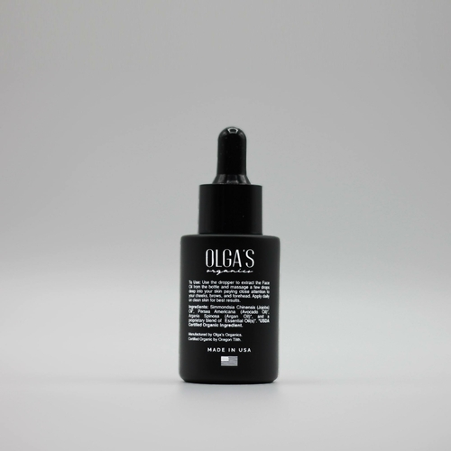 Olga’s Organics Face Oil is USDA Organic Certified, Vegan, Cruelty free, made without Parabens or Phalates, never made with GMOs.
