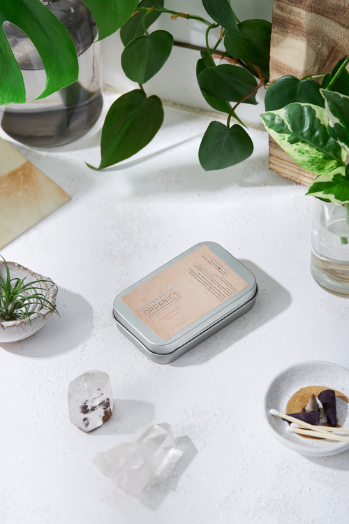 Beeswax, Shea Butter*, Coconut Oil*, Jojoba Oil*, Arrowroot Powder*, Betonite Clay*, Cedarwood Oil, Sandalwood Oil, Jojoba Oil, Patchouli Oil*