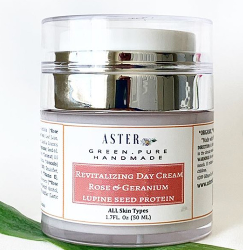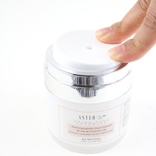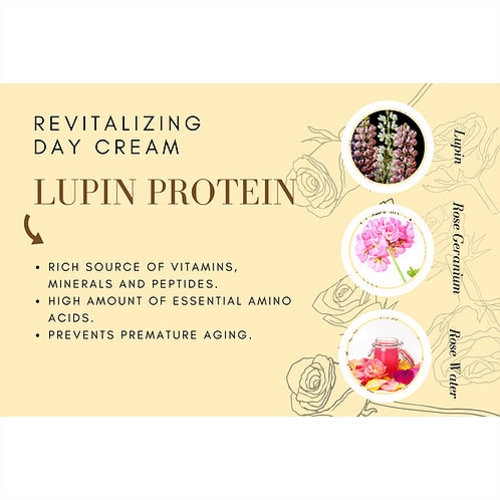 Rose Geranium Day Cream with White Lupin Seed Protein is a firming, lifting, moisturizing and organic lotion made with Rose Water, Green Tea extract, and Rose Geranium Essential Oil. It is a light and yet rich lotion which absorbs to your skin quickly to nourish your skin just enough without making it greasy. Use it every morning to hydrate the skin and achieve a radiant and youthful glow.