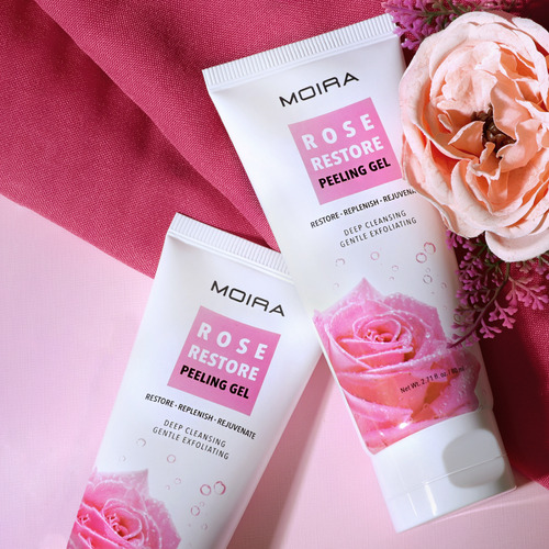 MOIRA Rose Restore Peeling gel is a light and refreshing gel texture formula and is all you need to quickly exfoliate and wash away dead skin cells to reveal healthy glowing skin. AHA and BHA exfoliate the skin to help fight visible blemishes and improves skin radiance. Rose Extract Antioxidants help hydrate and soften skin while carbonated water works to detoxify and purify the skin. Gentle enough for sensitive skin and can be used up to three times per week.