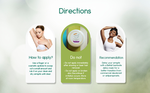Detox your armpits with a BeNat bentonite detox mask for a better transition from commercial deodorant or antiperspirants.