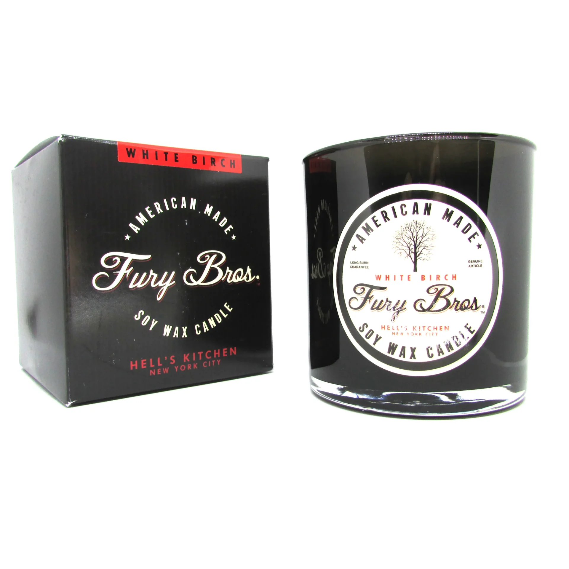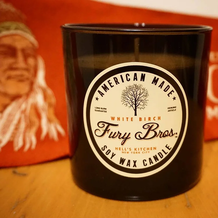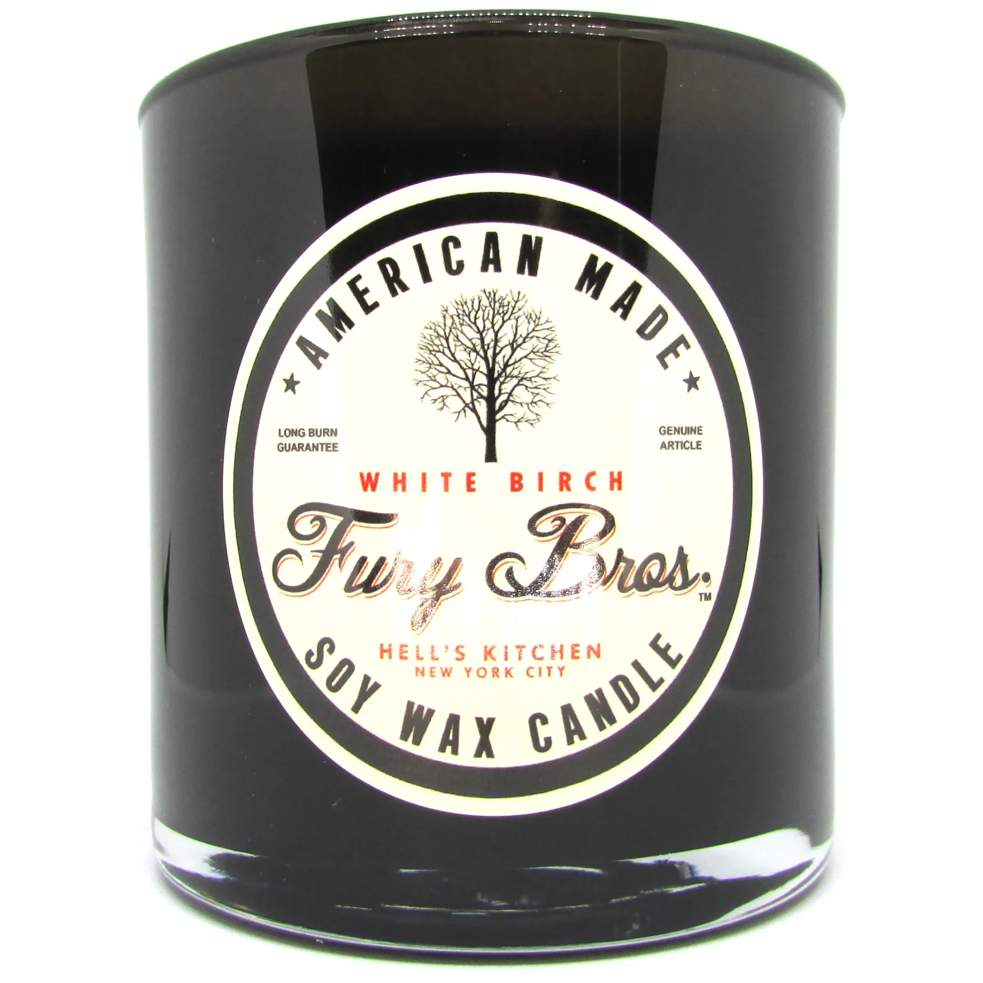 The Fury Bros White Birch Candle is a fragrant forest with a subtle spice, evoking a sense of wandering along an American trail, taking in the scent of the woods.