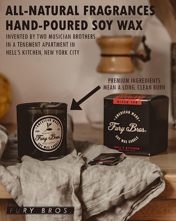 The Fury Bros BLACK SERIES Candles are a modern take on classic fresh scents, offering masculine fragrances that instantly create an inviting atmosphere in any space. These man candles are inspired by vintage nostalgia, rock & roll music, and the spirit of American travel, with each scent carrying a unique story, season, and a rich heritage in quality craftsmanship and leisure.